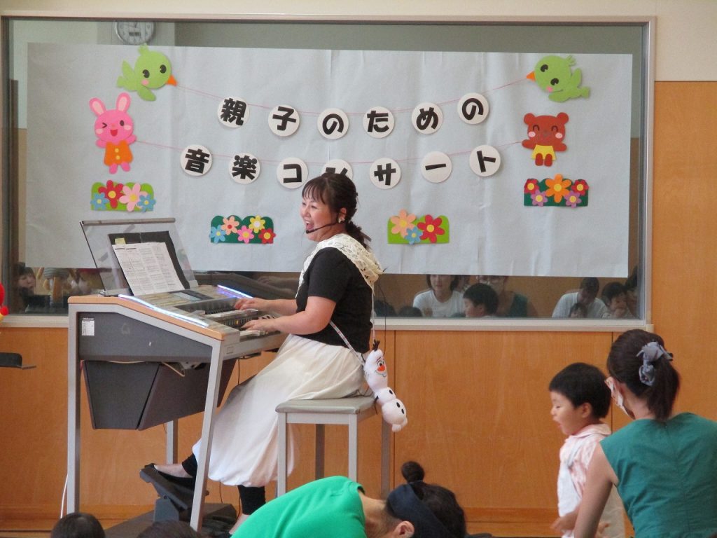 7/31 元気館 子育てキラキラ講座「親子のための音楽コンサート」 2025年09月12日掲載 アンパンマン・となりのトトロ・アナと雪の女王などみんなが大好きな曲に大喜びでした。エレクトーンの生演奏にお子さんだけでなくママたちが楽しそうで笑顔いっぱい!手拍子でノリノリのコンサートとなりました。