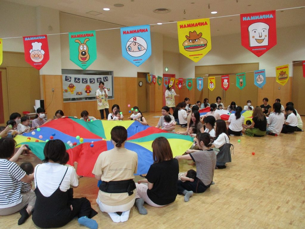 9/18 元気館 親子であ・そ・ぼ!「うんどうかい」 2025年10月25日掲載 今年の運動会は競技がリニューアル!!どうぶつリレー・アンパンマンレース・バルーンと盛りだくさんの内容となりました。赤ちゃんから走れるお子さんまで、みんな一緒に楽しめました。最後は、がんばったみんなの胸にアンパンマン金メダルが輝いていましたね。