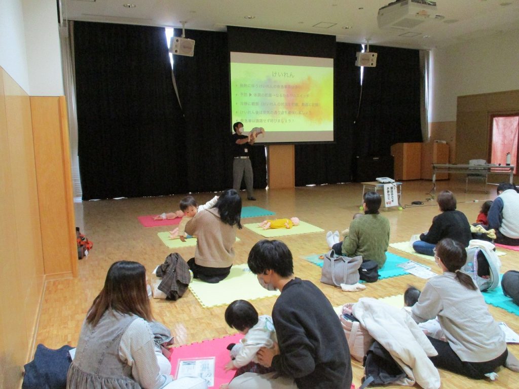 11/26 元気館 子育てキラキラ講座「もしもの時に守れる親になる」 2026年02月01日掲載 救急隊員の方から、「もしもお子さんが頭を強く打った時」「もしも誤飲が起きた時」など、様々な「もしも」への対応をお聞きしました。子ども用の人形を使用し心肺蘇生法を体験してみて、参加者の方は多くの気づきがあったようです。「もしも」のことが起きないように、予防することがなによりも大切だそうです。 問 保育課 TEL47-7785 FAX20-4201