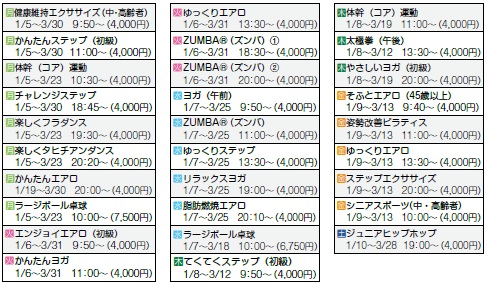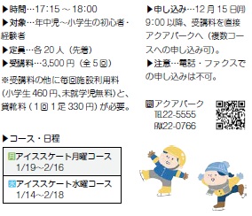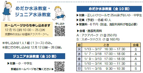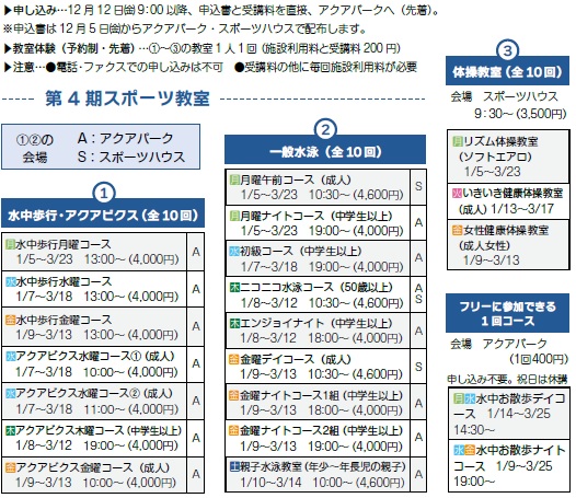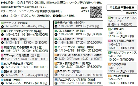 ▶申し込み…12月16日(火)9:00 以降、受講料を直接総合体育館へ(先着)。